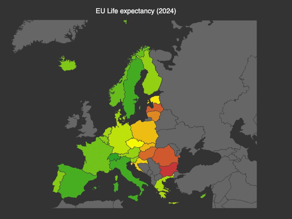 Using this tool, I created the image above, highlighting stark contrasts in life expectancy across European regions. Switzerland and Spain lead with impressive numbers, with some Spanish regions reaching a life expectancy of up to 85.2 years. Swiss citizens also enjoy longevity, with most regions reporting life expectancies between 83 and 84.6 years. In contrast, Bulgaria presents a different picture, with life expectancy as low as 72.3 years in some regions – revealing a gap of nearly 13 years compared to the highest in Europe.